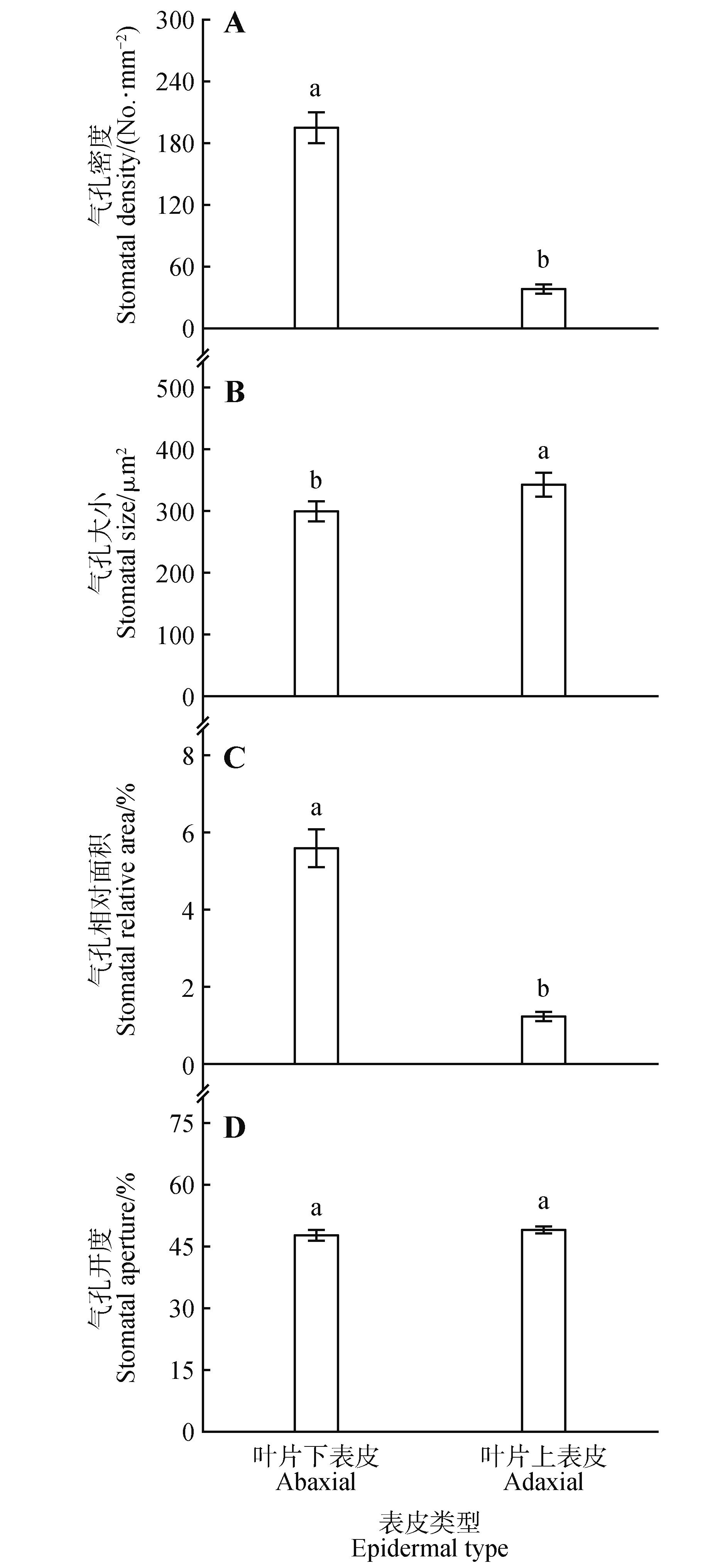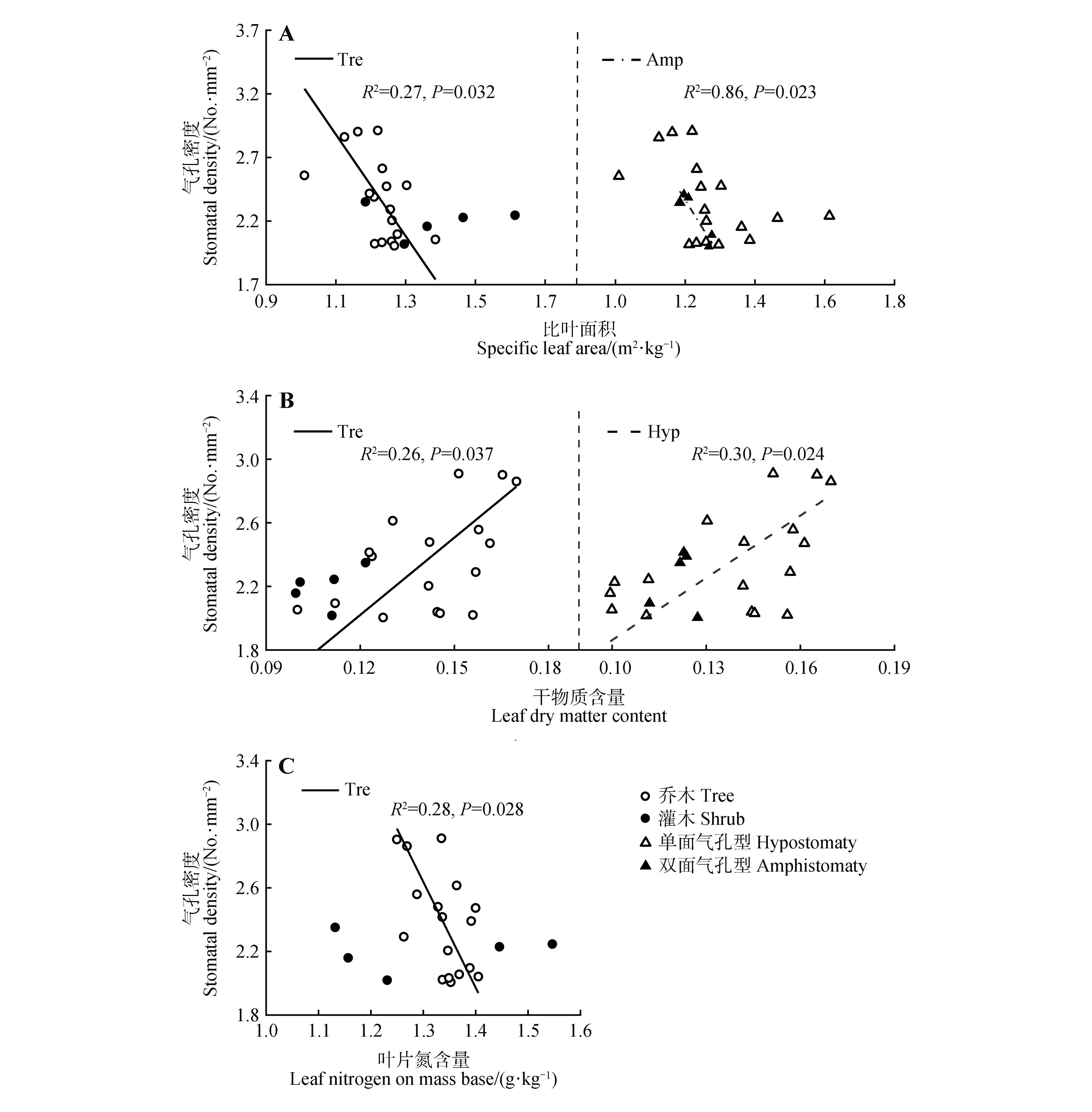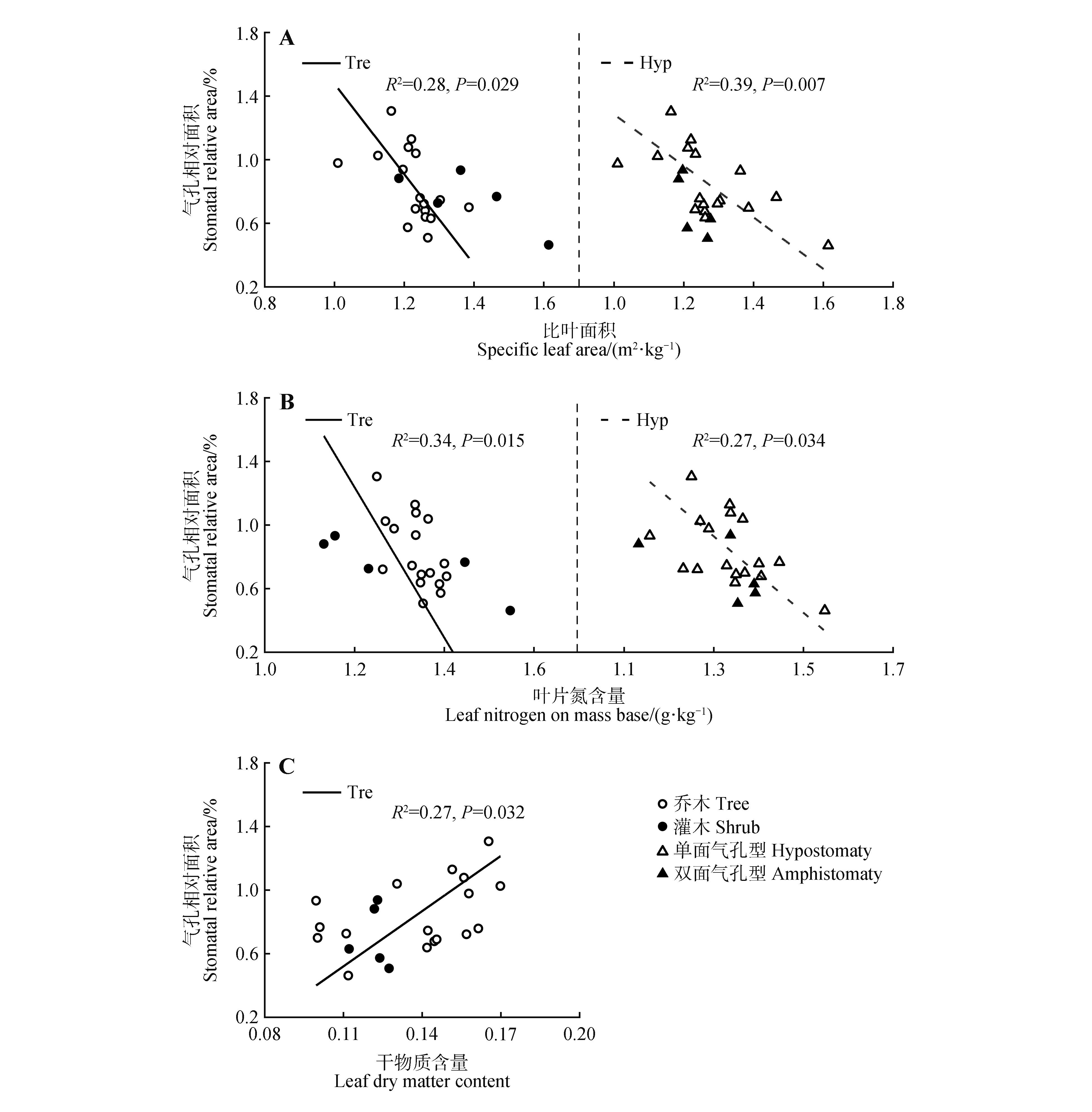 关键词: 生活型, 双面气孔型, 气孔特征, 叶资源经济性状