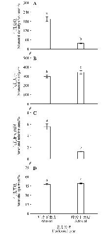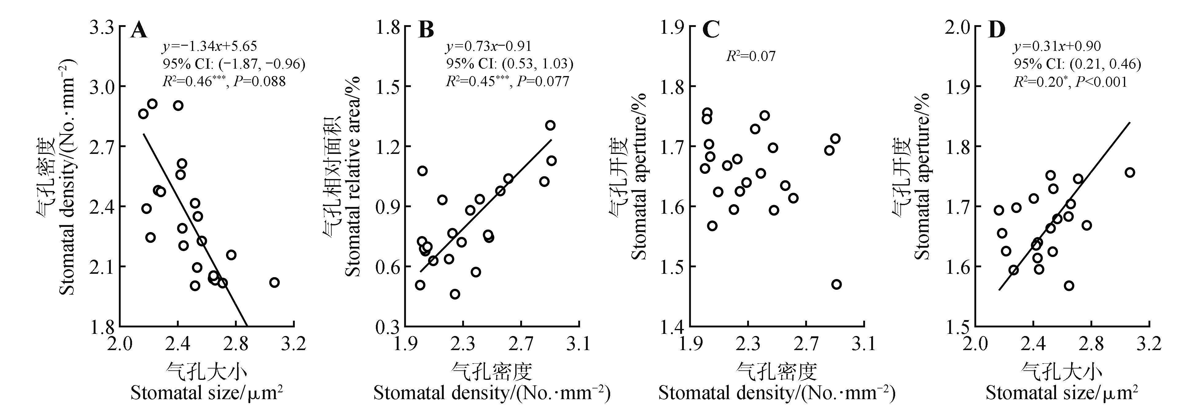 为探究不同生活型(乔木、灌木)和气孔分布类型(单面气孔型、双面气孔型)植物气孔特征差异及其与叶资源经济性状的相关关系,该研究于2023年7—8月以东北林业大学校园内常见的22个树种为研究对象,通过相关分析和标准化主轴分析发现:(1)生活型和气孔分布类型都显著影响气孔特征,乔木的气孔密度(DS)显著高于灌木(P<0.05),而气孔开度(AS)较低;单面气孔型植物的DS和气孔相对面积(ASR)显著高于双面气孔型植物(P<0.05);(2)气孔特征之间的关系在不同的生活型和气孔分布类型中存在差异,DS与气孔大小(SS)和ASR呈负相关关系,且仅在乔木和单面气孔型植物中达到显著水平(P<0.05);SSAS呈正相关关系,且仅在单面气孔型植物中达到显著水平(P<0.05);(3)气孔特征与其他叶资源经济性状关系紧密,DSASR都与比叶面积(ASL)和叶片氮含量(NL)负相关,与干物质含量(CLDM)正相关(P<0.05),ASNL负相关。叶片性状间的协同关系在乔木和单面气孔型植物中更加稳定,而在灌木和双面气孔型植物中更趋向于独立发展。研究结果有助于进一步了解不同类别植物的气孔发育策略。