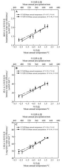 LI J H, LI H, WEI Y W,et al.Water use efficiency of Pinus sylvestris,Pinus tabulaeformis,Quercus mongolica and their response differences to environmental factors[J].Bulletin of Botanical Research,2016,36(4):581-587. | |