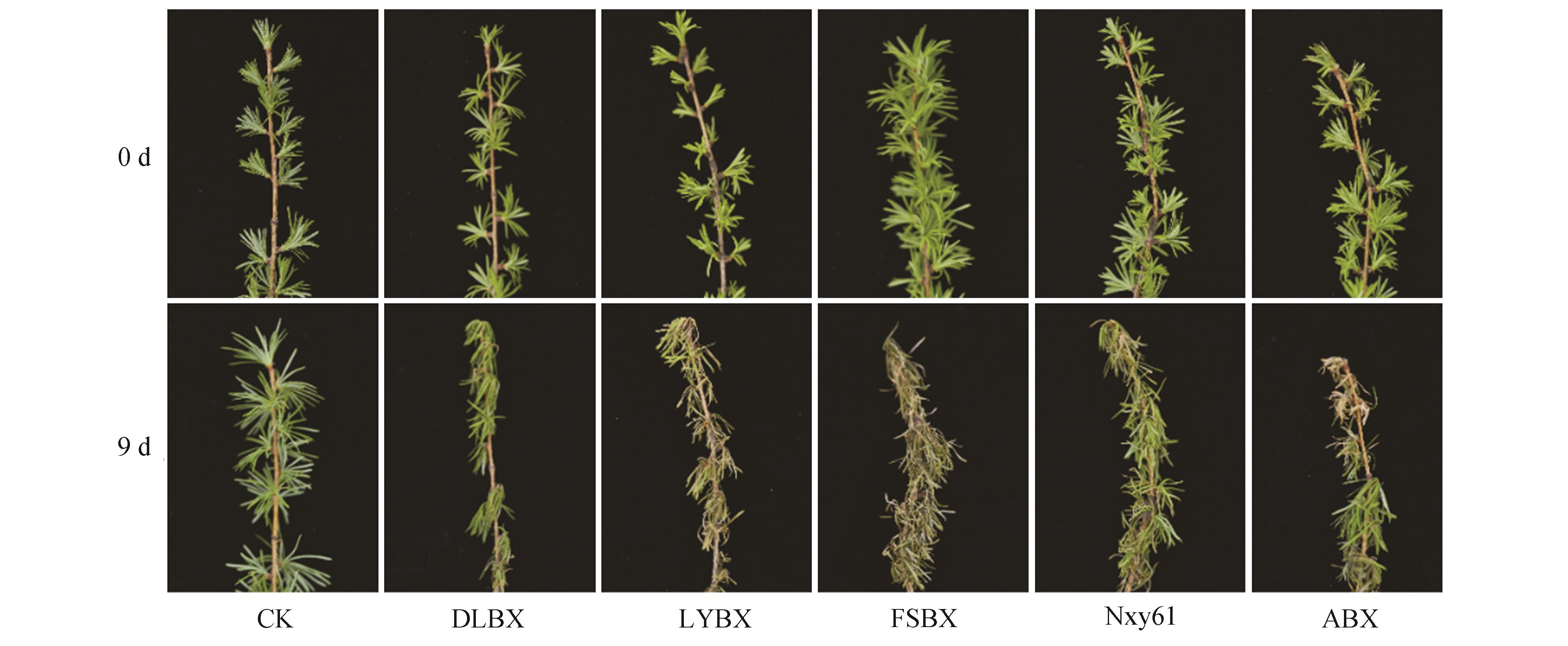 WANG J G, JIANG X, LUAN Q S,et al.Effects of Bursaphelenchus xylophilus infestation on physiological indexes of Larix kaempferi [J].Journal of Southwest Forestry University(Natural Sciences),2023,43(6):135-140. | |