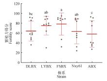 高抗家系 High-resistance families | 中抗家系 Medium-resistance families | 感病家系 Low-resistance families | 高抗家系 High-resistance families | 中抗家系 Medium-resistance families | 感病家系 Low-resistance families | |