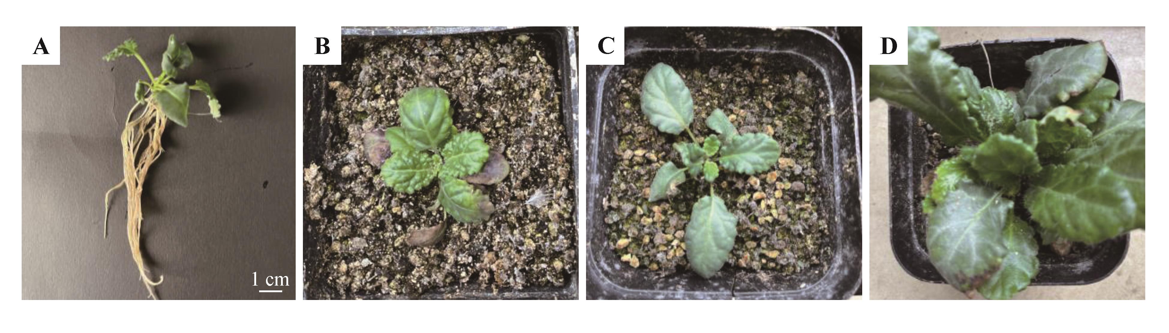 Refined and transplanted tissue-culture seedlings of S. petrophilaA.The seedlings of S. petrophila from the tissue culture bottle;B.The growth status after transplanting for seven days;C.The growth status after transplanting for 20 days;D.The growth status after transplanting for two months.
